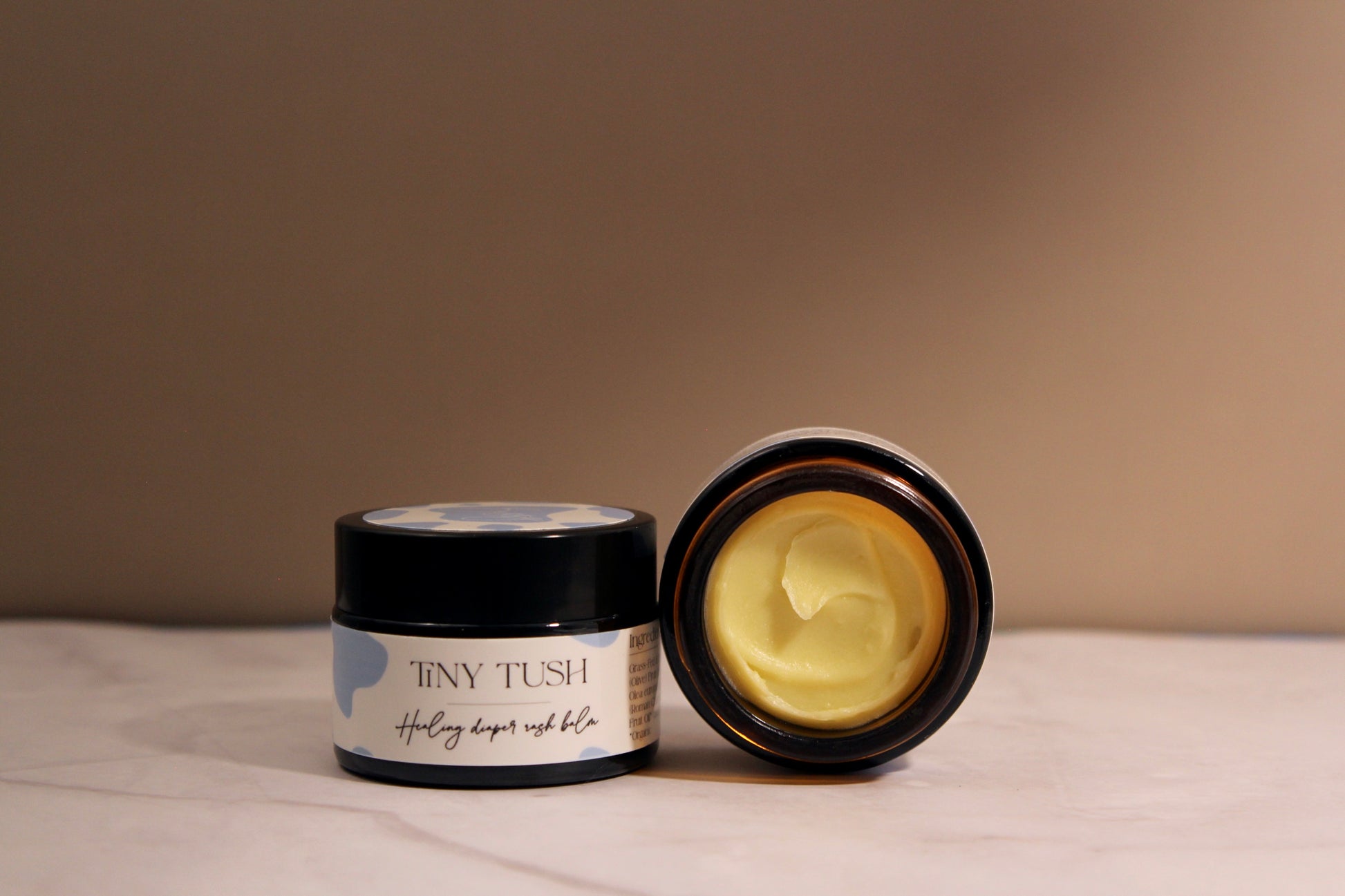 Free from harsh chemicals and artificial fragrances, Tiny Tush offers a safe, natural solution for diaper rash relief, keeping your baby’s bottom soft, smooth, and happy.
